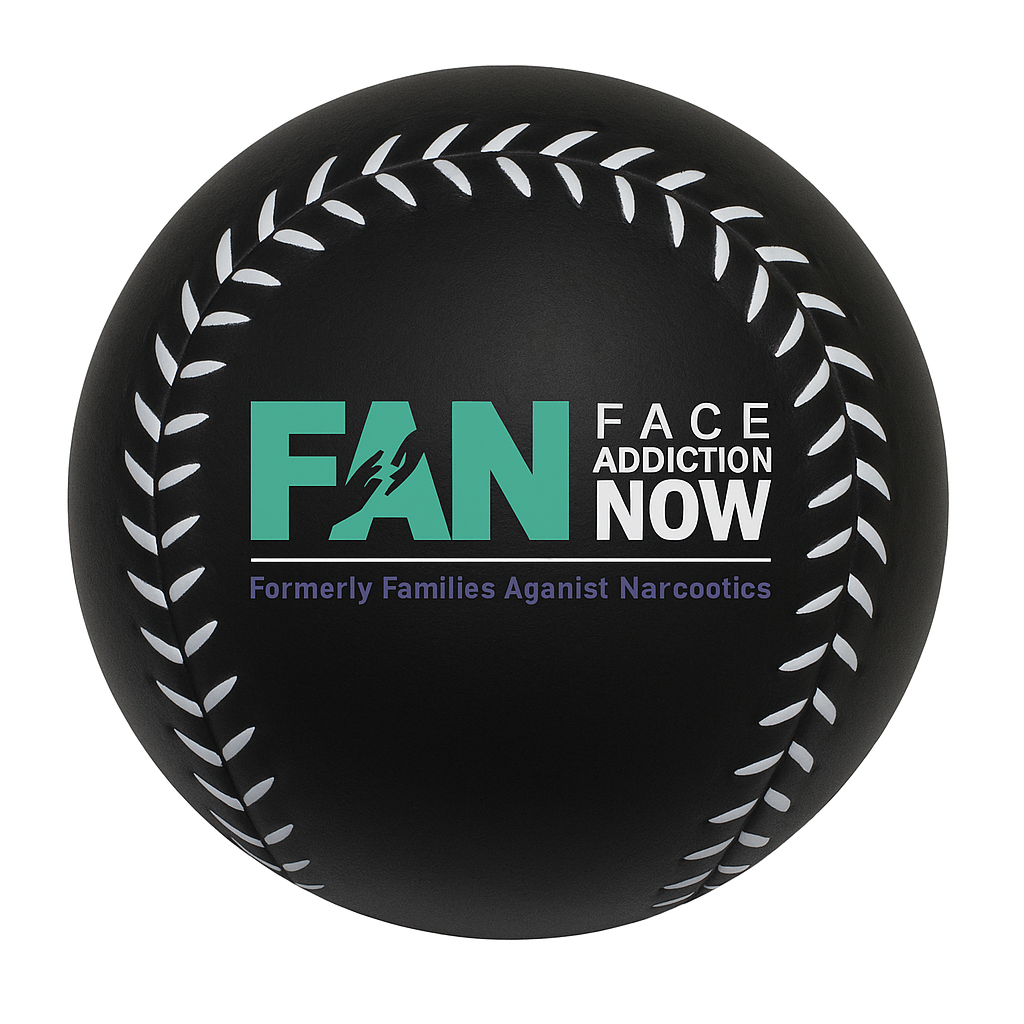 This 2.5" diameter baseball-shaped polyurethane stress reliever is a fun and practical giveaway item. Perfect for sharing at community resource tables, handing out at school presentations, or including in event giveaways to spread awareness.