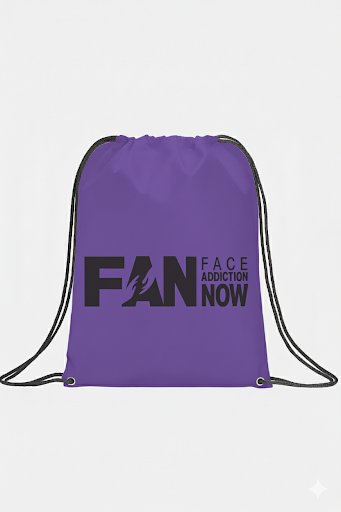 Details: Purple with black FAN logo, 13" W x 16.5" H, drawstring closure, coated water-resistant material. Price includes a $50 setup fee.