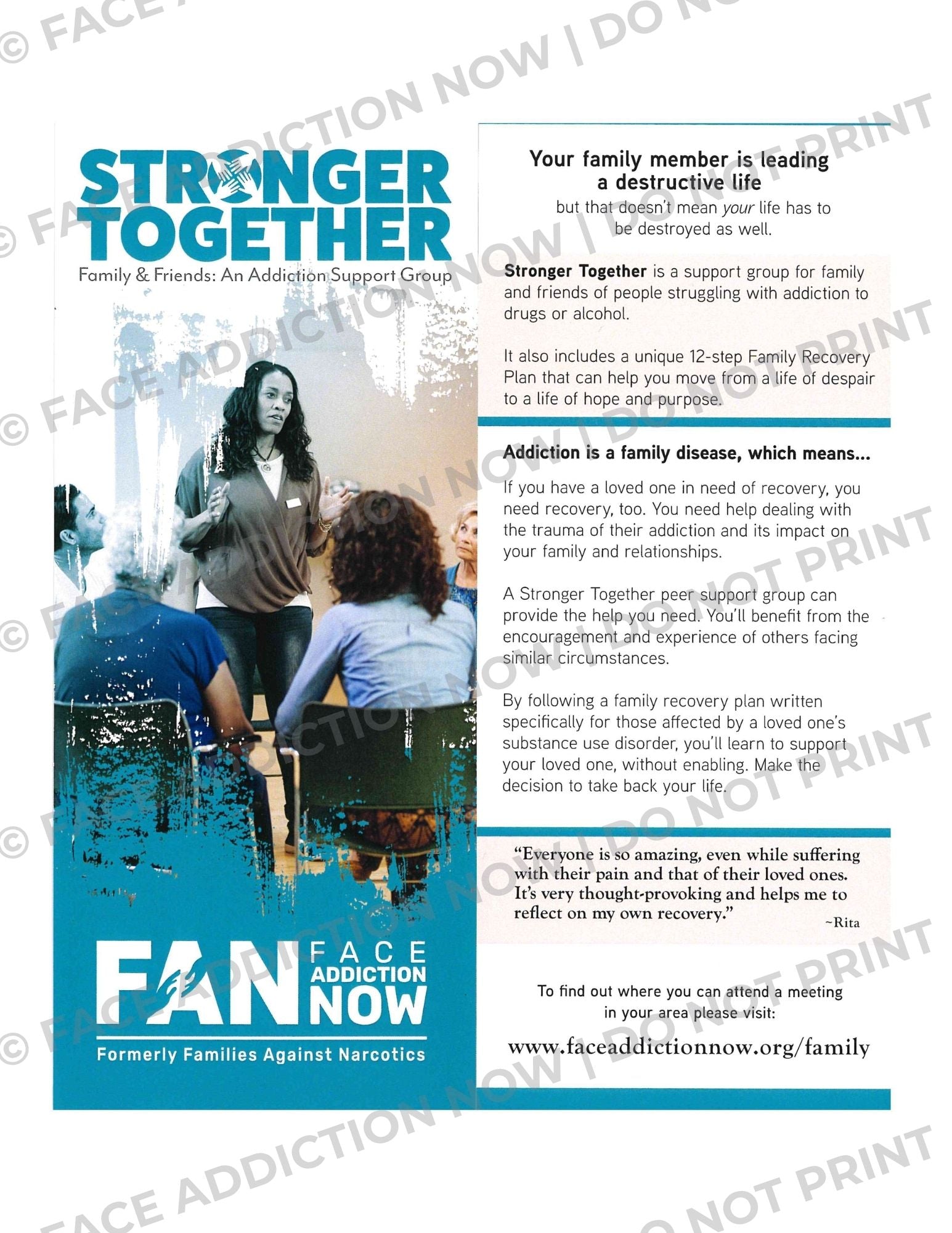 Chapters can use this rack card at community events, FAN Forums, or in folders for stakeholders to spread awareness of this program and highlight how FAN supports families across all stages of the recovery journey.